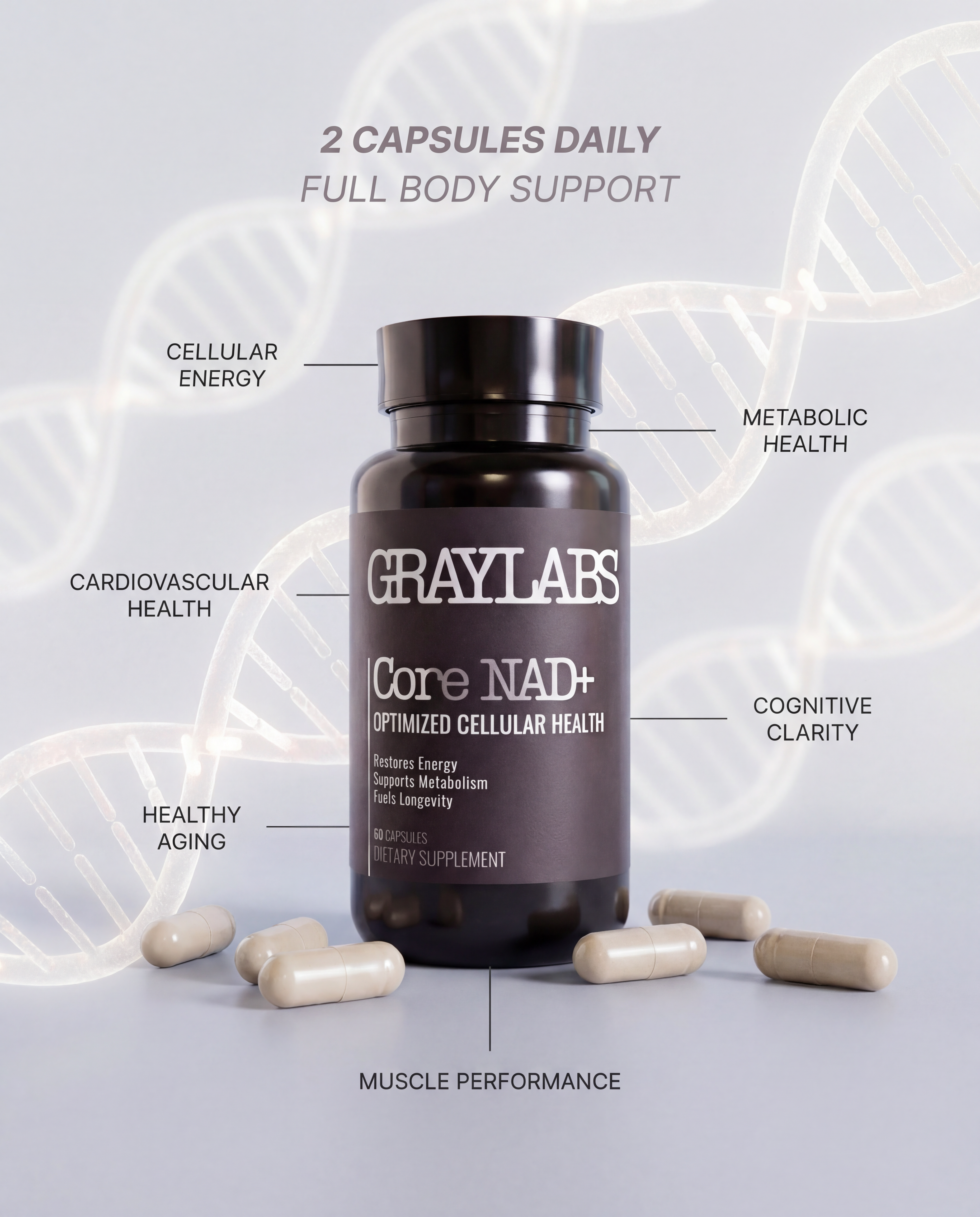 GRAYLABS™ is the first modular NAD+ system built for adults—because your biology, energy, and hormones deserve more than a one-size-fits-all supplement.