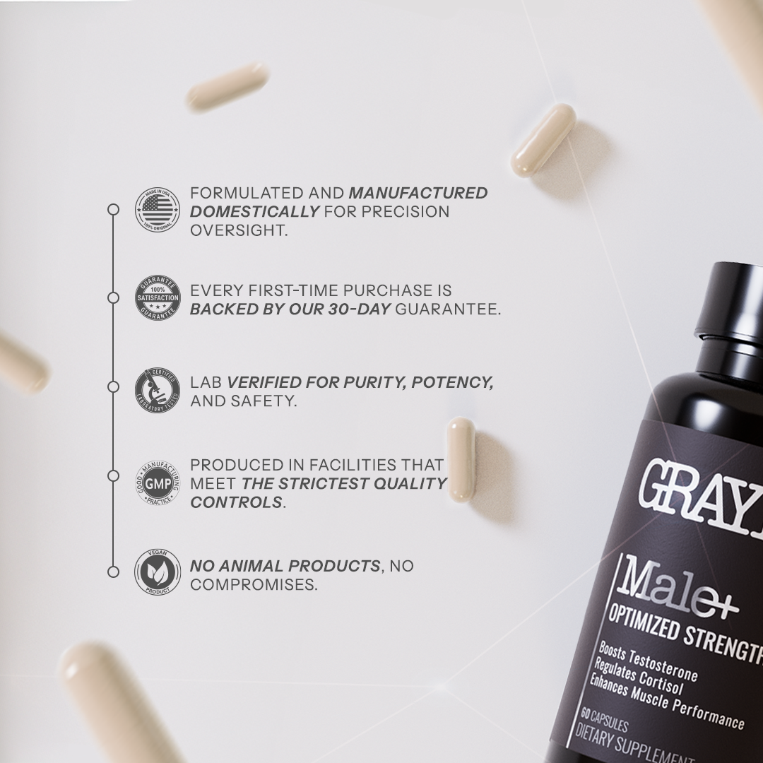 GRAYLABS Male+ helps boosts testosterone. It’s a foundational formula built to stabilize key male hormones and rebuild long-term vitality*.